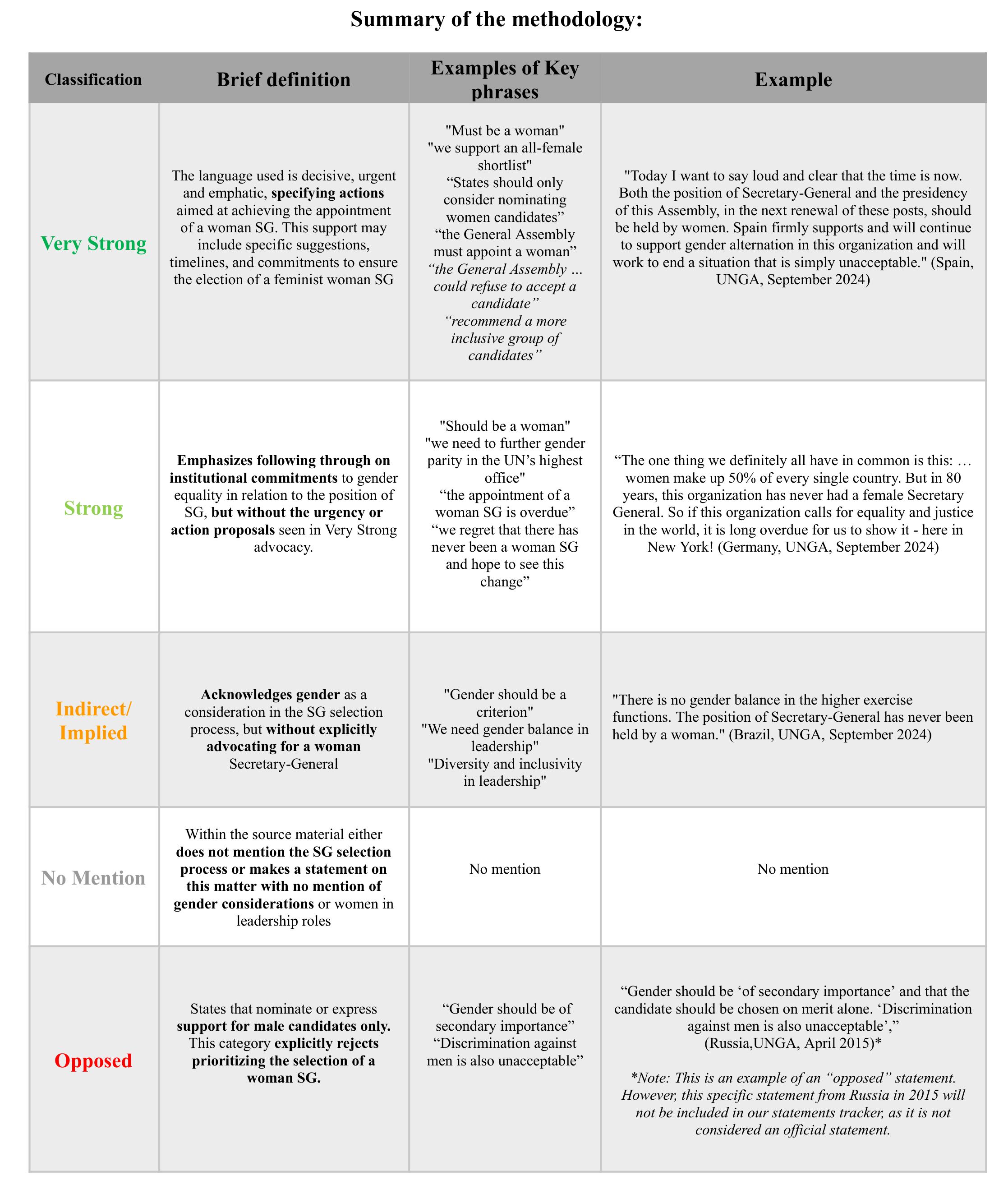 1 for 8 Billion has partnered with the Global Network of Women Peacebuilders (GNWP) and the Center for Global Affairs, School of Professional Studies, New York University (NYU CGA) on a research project to create a Statements Tracker that maps Member State support for a feminist woman as the next UN Secretary-General.